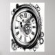 Eine detaillierte schwarz-weiße Mechanikuhr in einem Steampunk inspiriert mit römischer Nummer darauf. Das ist eine künstlerische KI.