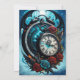 Die Uhr im Nebel der Unendlichkeit. Ein fast surreales Design im Zentrum dieser visuellen Poesie ist eine große, verzierte Taschenuhr, deren römische Ziffern wie alte Geheimnisse auf dem Zifferblatt eingemeißelt sind. Sie scheinen die Geschichten der Vergangenheit zu flüstern, während sie in der Stille der Zeit verweilen. Der Hintergrund ist ein faszinierendes Spiel von wirbelnden blauen und dunkelblauen Wolken, Diese Wolken scheinen das Gewicht der Unendlichkeit zu tragen, während sie sanft rund um die Uhr winden, und gibt ihm eine Aura des Geheimnisses.