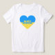 Mit diesem blauen und gelben ukrainischen Fahnenherz mit der Botschaft Ruhm an die Ukraine, die in Slawa Ukraine übersetzt wird, bekunden Sie Ihre Liebe und Unterstützung für das ukrainische Volk. Es ist hier auf einem T - Shirt für Frauen dargestellt. Stellen Sie das Design so ein, dass es größer oder kleiner wird und fügen Sie Ihren eigenen Text hinzu, wenn Sie möchten. Weitere Shirt Stile und Farben sind ebenfalls verfügbar. Unterstützen Sie die Ukraine mit diesem niedlichen Herzdesign!