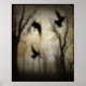 Die Unschärfe der Krähen, die in Vintagen Farbtönen in die Bäume fliegen.