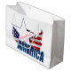 Amerikanische Flagge in Form der US-Landkarte, weißer Stern mit blauer Kontur, rot und blau Text The Unites Staaten Of America. Der Unabhängigkeitstag und andere Gelegenheiten patriotische Geschenke und Souvenirs für jedermann. Große Geschenktasche. Personalisierbar. Sie können das Bild ändern. Viel Spaß!