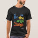 Das T - Shirt Design beinhaltet die leistungsstarke Meldung "Be the Change" in einem lebendigen, mehrfarbigen Schriftart. Der Text soll inspiriert und motiviert werden, indem er Einzelpersonen ermutigt, Maßnahmen zu ergreifen und positive Auswirkungen auf die Welt zu erzielen. Die verwendeten Farben sind fett und auffallend, was es zu einem Aussagestück für diejenigen macht, die an den sozialen Wandel glauben. Das Design ist sauber und minimalistisch, sodass die Botschaft in den Mittelpunkt der Bühne gerückt werden kann.