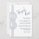 Diese moderne, stilvolle Seeschifffahrts-Einladung hat eine passende nautische Phrase "The Knot binden" an der Spitze in einem trendigen Handschrift-Skript, mit einem Knoten auf der links Seite, in einem klassischen weiß und marineblau Farbschema. Finden Sie passende Produkte in der Kollektion, und kontaktieren Sie mich über den Zazzle Chat für weitere Produkte, andere Farben oder Designs.
