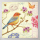 © Daphne Brissonnet / Wilder Apple. Ein farbenfroher Vogel steht auf einem Ast. Es gibt auch Blume und Schmetterlinge auf dem Bild.