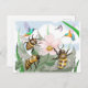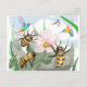 Lustige Postkarte, auf der Vögel und Bienen über eine Blume kämpfen. Illustration ©2019 Michael C. Paul https://mikepaulart.com