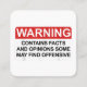 Die Warnung enthält Fakten und Meinungen, die eini Quadratische Visitenkarte