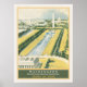 Das Vintage Poster präsentiert eine nostalgische und faszinierende Szene des ikonischen Gebäude der Hauptstadt der Vereinigten Staaten in Washington, D.C., umgeben von üppigen Gärten und Set gegen einen malerischen Himmel. Das Poster besticht durch sein klassisches Design, seine Farbenpracht und seine elegante Typografie und lädt die Zuschauer ein, die historische und politische Bedeutung dieser renommierten Sehenswürdigkeit zu entdecken.