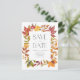 Dieser Herbst Save the Date Postcard zeichnet sich durch ein warmes Herbstdesign aus, das mit sanftem Wasserfarbenfolien in Rost-, Bernstein- und Olivgrün gerahmt und mit einem subtilen Goldakzent versehen ist. Es wurde in einem bequemen Postkartenformat erstellt und bietet eine einfache und stilvolle Möglichkeit, Ihr Hochzeitsdatum ohne Umschläge anzukündigen. Fügen Sie Ihre Namen, das Hochzeitsdatum und den Ort hinzu, um es persönlich und sinnvoll zu machen. Die Kombination aus saisonalen Kunstwerken und elegantem Design macht es zu einer großartigen Wahl für rustikale Hochzeiten, im Freien oder im Herbst. Es ist eine wunderschöne und praktische Art, Ihren Gästen lassen, dass sie wissen, wie sie ihre Kalender kennzeichnen.