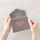 Mit dieser schicken Braun- und Sage Green Hochzeitsempfehlung laden Sie Ihre Lieben mit modernem Komfort ein. Dieses einladende Hochzeitsschema mit einem Hintergrund aus Braun und Weiß Grün mit einer sehr subtilen Sternmuster-Textur und einem Text. Passen Sie den Text an, fügen Sie Ihre Website und E-Mail für eine einfache, minimalistische All-in-One-Hochzeitseinladung ein. Perfekt für das stilbewusste Paar, das ein einzigartiges und funktionales Einladungs-Design sucht.