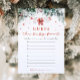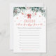 Das Red Santa Baby Christmas Baby Baby Kleidung Guess The Baby Food Game bringt festlichen Spaß an Ihrer Babydusche! Dieses niedliche Design mit den Kleidern des Weihnachtsmannes, den zarten Schneeflocken und den Touchs des wintergrünen Eukalyptus versetzt die Gäste in die Lage, verschiedene Babynahrungsmittel nach Aussehen, Geruch oder Geschmack zu erraten. Es ist eine spielerische Aktivität, die den gemütlichen Urlaubsgeist einfängt und Ihrem Fest ein fröhliches, interaktives Element hinzufügt, während die Gäste miteinander konkurrieren, um jeden Geschmack richtig zu erkennen. Ideal, um lustige Erinnerungen und Lacher zu erschaffen, während Sie die Ankunft Ihres Kleinen feiern!