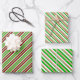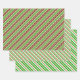 Diese lustigen Weihnachtsdesigns sind mit gestreiften Mustern in den Farben Grün, Weiß und Rot gestaltet. Feiernde Packpapierblätter wie diese könnten sich beim Umpacken von Geschenken, die anlässlich der Weihnachtsfeier gegeben werden, als lustig erweisen.