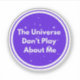Mit diesem auffälligen lila Aufkleber mit der kühnen Aussage "The Universe Don't Play About Me" (Das Universum Don't Play About Me) können Sie Ihr kosmisches Selbstvertrauen auf die nächste Stufe bringen! Set vor einem traumhaft beleuchteten Hintergrund, kombiniert dieses Design himmlische Farben mit einer kraftvollen Bestätigung, die perfekt für jeden ist, der weiß, dass ihr Wert in den Sternen geschrieben ist.