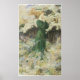 Diese wunderschöne Aquarell wurde 1905 gemacht. In diesem Gemälde ist eine junge Frau mit blonden Haaren in einem tiefen grünen Kleid gekleidet. Sie ist in einem Wald stehend. Der Boden und die Bäume sind mit kleinen weißen Blume bedeckt.