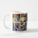 Diese moderne Tasse des Fotos verfügt über eine Collage von 9 quadratischen Foto-Räumen und benutzerdefinierte "Wir Liebe Sie Opa" marineblaue Formulierung, blaues Herz und Namen von Enkelkindern, die vollständig personalisiert sein können. Macht ein nachdenkliches und süßes Vatertagsgeschenk für den Großvater Ihrer Kinder.