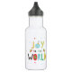 Diese niedliche "Joy to the World"-Wasserflasche zeichnet sich durch eine große Anzahl von Farben und Bildern von Sternen, Herzen, Schneeflocken, Heiligen, Weihnachtsbaum und Ziergegenständen aus. Eine fröhliche Wasserflasche für die Weihnachtszeit.