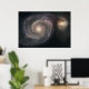 Die anmutigen, gewundenen Arme der majestätischen Spiralgalaxie M51 (NGC 5194) erscheinen wie eine große Wendeltreppe, die durch den Raum fegt. Sie sind eigentlich lange Sternenstrassen und Gas mit Staub geschnitzt. Dieses schärfste Bild der Whirlpool-Galaxie, aufgenommen im Januar 2005 mit der Advanced Camera for Surveys an Bord des Hubble-Weltraumteleskops der NASA, illustriert das großartige Design einer Spiralgalaxie, von ihren kurven Spiralarmen, in denen sich junge Sterne befinden, bis zu ihrem gelblichen Kern, einer Zuhause älterer Sterne. Die Galaxie trägt den Spitznamen Whirlpool wegen ihrer wirbelnden Struktur. Das auffälligste Merkmal des Whirlpools sind seine zwei sich drehenden Arme, eine der so genannten Grand-Design-Spiralgalaxien. Viele Spiralgalaxien besitzen zahlreiche, locker geformte Arme, die ihre Spiralstruktur weniger stark ausprägen. Diese Arme dienen einem wichtigen Zweck in Spiralgalaxien. Sie sind Sternenfabriken, die Wasserstoffgas komprimieren und Cluster neuer Sterne bilden. Im Whirlpool beginnt die Montagelinie mit den dunklen Gaswolken am inneren Rand, bewegt sich dann in leuchtend rosa sternbildende Regionen und endet mit den leuchtend blauen Sternhaufen am äußeren Rand. Einige Astronomen glauben, dass die Arme des Whirlpools so auffällig sind, aufgrund der Auswirkungen einer nahen Begegnung mit NGC 5195, der kleinen, gelblichen Galaxie an der äußersten Spitze eines der Arme des Whirlpools. Auf den ersten Blick scheint die kompakte Galaxie auf den Arm zu ziehen. Hubbles klare Sicht zeigt jedoch, dass NGC 5195 hinter dem Whirlpool vorbeigeht. Die kleine Galaxie fliegt seit Hunderten Millionen von Jahren an dem Whirlpool vorbei. Während der NGC 5195 vorbei treibt, pumpt sein Gravitationsmuskel Wellen in die Pfannkuchenform des Whirlpools. Die Wellen sind wie Wellen in einem Teich, die entstehen, wenn ein Fels ins Wasser geworfen wird. Wenn die Wellen durch kreisende Gaswolken innerhalb der Scheibe hindurchgehen, drücken sie das gasförmige Material entlang der inneren Kante jedes Arms. Das dunkle staubige Material sieht aus wie Ansammlung-Sturmwolken. Diese dichten Wolken brechen zusammen und erzeugen einen weck der Sterngeburt, wie man an den leuchtend rosa Sternenbildern sieht. Die größten Sterne fegen schließlich die staubigen Kokonen mit einem Strom von Strahlung, Hurrikan-ähnlichen Sternenwinden und Schockwellen aus Supernova-Explosionen weg. Hellblaue Sternhaufen kommen aus dem Chaos und beleuchten die Arme des Whirlpools wie Stadtlichter. Der Whirlpool ist einer der galaktischen Lieblinge der Astronomie. Das 31 Millionen Lichtjahre entfernte Whirlpool liegt in der Konstellation Canes Venatici (die Jagdhunde) und bietet dank seiner schönen Aussichten auf die Erde und seiner Nähe zur Erde Astronomen die Möglichkeit, die Struktur und den Sternbildungsprozess einer klassischen Spiralgalaxie zu untersuchen.