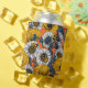 Nahtloses Vektormuster aus handgezeichneten Molsen, Mohn und Ladybugs. Gelbe und weiße Version.