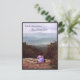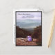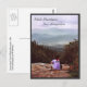 Diese Postkarte zeigt Fotografien von einer der wunderschönen Wanderungen im Weißen Gebirge von New Hampshire. Ein Wanderer folgte dem Nancy Pond Trail bis zum Norcross Pond Outlet, von wo aus man einen spektakulären Ausblick auf die Pemigewasset Wilderness, den Berg Bond, die Twin Range und die Franken Gebirgskette hat. Er hat seinen Wanderstock auf die Felsen gelegt und ruht auf einer großen Granitplatte. Er trägt eine rote Bandana und ein lila lila Shirt, das lautet: Support Jazz. Die Aussicht ist wunderschön mit Himmel und Bergen in einer Farbpalette von blau, grün und mauv.