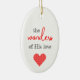 Weiß und rot, ovales Ornament mit den Worten "Die Wunder seiner Liebe". Eine bedeutsame und festliche Ergänzung zu Ihrem Weihnachtsbaum.