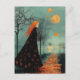 Eine Dame mit schönen roten Haaren, die nachts mit vielen Monden am Himmel im Stil einer gemischten Medienkollektion spazieren ging.