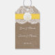 Die Hochzeitskollektion mit gelbem Sand ist ein atemberaubendes Design mit einem hübschen rustikalen Burlap-Effekt-Hintergrund und einem romantischen Vintagen Spitzeneffekt, der mit einem atemberaubenden Sand-Dollar und einem gelben Band vollendet wird. Diese Geschenketiketten können für Ihren besondere Anlass personalisiert sein und würden das perfekte Objekt für jede Strandhochzeit, Brautparty, Verlobungsfeier, Geburtstagsparty und vieles mehr machen. *Bitte beachten Sie, dass Zazzle nur gedruckte Geschenketiketten verkauft, sodass dieses Produkt keine echten Brombeeren, Spitzen, Sand-Dollar- oder Bandmaterialien enthält.