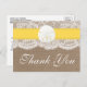Die Hochzeitskollektion mit gelbem Sand ist ein atemberaubendes Design mit einem hübschen rustikalen Burlap-Effekt-Hintergrund und einem romantischen Vintagen Spitzeneffekt, der mit einem atemberaubenden Sand-Dollar und einem gelben Band vollendet wird. Diese Dankeschön Postkarten können für Ihren besondere Anlass personalisiert sein und würden das perfekte Dankeschön für jede Strandhochzeit, Brautparty, Verlobungsfeier, Geburtstagsparty und vieles mehr machen. *Bitte beachten Sie, dass Zazzle nur bedruckte Postkarten verkauft, sodass diese Dankeschön Postkarten keine echten Bretter, Spitzen, Sand-Dollar- oder Bandmaterialien haben.