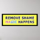 Ermutigen Sie Ihr wahres Selbst mit diesem mutigen und aufregenden Design und erinnern Sie daran, dass sich die Magie des Lebens entfaltet, wenn wir von Scham gelassen werden. Der lebendige, gelbe Hintergrund strahlt Positivität und Wärme aus, während die bestärkende Botschaft ein Gefühl von Freiheit und Freude ausstrahlt. Tragen Sie dies als persönliche Erklärung oder Geschenk an jemanden, der ein wenig zusätzliche Ermutigung braucht, um authentisch zu leben. Gelassen, dieses Design ist Ihre tägliche Erinnerung, dass Wachstum und Transformation von Selbstannahme herrühren. Scham entfernen, Zauber passieren, inspirierendes Zitat, motivierend Design, positive Energie, Selbstannahme, emotionales Wachstum, gelber Hintergrund, Typografie, persönliche Ermächtigung, Vertrauensförderer, Wohlfühlgeschenk, Aufmunterung, Ermutigung, transformatives Design, strahlende Gelbe, Selbst-Liebe, Heilung durch Kunst, Meinungsfreiheit, Freude, Freiheit, Freude, Freude, Freude, lebhaftes Leben