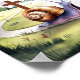 Eine Aquarellillustrierung einer Schnecke mit einem kleinen Kreuz auf ihrer Muschel. Die Schnecke bewegt sich auf einem kurvenreichen Weg. Über der Schnecke steht ein Text, in dem steht: "Die Zeit Gottes ist perfekt." Der Hintergrund ist eine ruhige Landschaft mit Bergen, Bäumen und einem Gewässer.