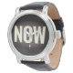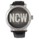 Uhr, Klassische Damenuhr mit schwarzen Lederarmband