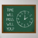 Das dekorative Plakat im Klassenzimmer mit dem Sprichwort "Time Will Pass, Will You" auf einem Chalkboard-Hintergrund