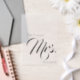 Sie können dieses 'zukünftige Frau'-Vellum-Overlay mit dem neuen Namen der Braut anpassen. Frau erscheint in einem eleganten schwarzen Skript (Typografie).