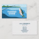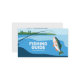 Eine Visitenkarte für einen Fischführer, der mit einer Angelstange illustriert ist, an der ein Fisch an der Linie hängt. Der Hintergrund ist ein ruhiger See mit einigen Bäumen. Es wird sich für Unternehmen oder Aktivitäten wie Angelführer, Fischer, Köder und Angelladen, Angelcharter, etc. eignen.