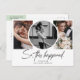 Teilen Sie mit unserer Ankündigung "So Dieses Geschehen" die spannenden Neuigkeiten über Ihre jüngste Hochzeit oder Ihren Umbruch. Mit ein paar Fotos in einem modernen minimalistischen Design, erweckt diese Ankündigung die Freude und Spontaneität Ihres besonderen Tages. Der Rücken bietet Platz für eine persönliche Note, die es Ihnen ermöglicht, mit Ihren Lieben tief empfundene Gefühle und Details zu teilen. Diese stilvolle und intime Ankündigung ist der perfekte Weg, um Familie und Freunden auf Ihre wunderbaren Neuigkeiten lassen.