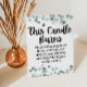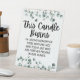 Dies ist eine grüne Eukalyptus-Pflanze, die dieses Candle Burns Memorial Candle Burning Wedding Sign vermutete. Einfaches Hochzeitszeichen. Dieses Schild eignet sich ideal für einen Gedenktisch, um alle Lieben anzuzeigen, die Sie verloren haben. Es lautet "In liebevoller Erinnerung an diejenigen, die heute nicht hier sind, aber die für immer in unserem Herzen präsent sind.