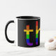 Genießen Sie Ihren Kaffee in einer Tasse des schwarzen Kaffees mit dem Wort DIESEN in den Regenbogenflaggenfarben. Große Geschenkentwurfs-Tasse, damit jedermann ihre Unterstützung des Diversity und des STOLZES anzeigt. Helle Regenbogenfarben auf einem schwarzen Hintergrund stellen diese Designer STOLZ-Tasse sehr zeitgenössisch und glücklich, Upbeat her, während es Diversity stützt. Entworfen durch CricketDiane und Allia bringen 2018 Künstler/Designer und Grille Studio-Kunst unter und entwerfen.