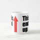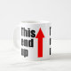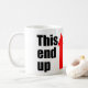 Keine Sorge mehr, aus welchem Ende der Tasse zu trinken. Diese Tasse-Clearing zeigt das Geschäftsende mit einem kräftigen roten Pfeil an.