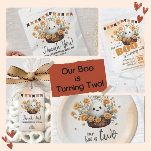 Feiern Sie einen leckeren zweiten Geburtstag mit diesem bezaubernden "This Boo is Two"-Design mit einem lächelnden Geist umgeben von goldenen Sonnenblumen, Kürbissen und fallendem Laub unter einem festlichen Banner. Die warmen Orangen-, Gold- und Cremetöne machen das Hotel zu einem idealen Ort für Geburtstage im Oktober, Party im Herbst oder Foto mit Kürbispflaster.
