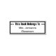 Diese Lehrer-Briefmarke hat drei Zeilen Darstellungstext. Alle Texte können bearbeitet, geändert oder gelöscht werden. Die oberste Zeile ist in einer fett gedruckten Schrift. Es heißt derzeit, dass dieses Buch gehört. Die zweite und dritte Zeile sind nicht fett. Sie sind für den Namen des Lehrers und zusätzlichen Text. Ein Rechteck bildet den Rahmen.