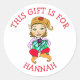 Dieses Geschenk ist für, Girl Elf mit Geschenk Runder Aufkleber