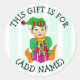 Dieses Geschenk ist für (Name hinzufügen) Geschenketiketten-Aufkleber. Niedlicher Elf mit einem Geschenk.
