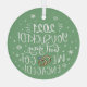 Feiern Sie Ihre Verlobung mit diesem lustigen und modernen Glasschmuck, der eine trendige handgeschriebene Beschriftung mit dem Aufdruck "2022 Sie sind zum Kotzen! Aber ja, wir got verlobt!" in weißen, handgeschriebenen Schriftart auf einem hellgrünen Hintergrund, und ist mit Schneeflocken und einer Abbildung von zwei Verlobungen Ringen geschmückt.
