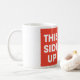 Die Tasse "This Side Up with Up Arrow" ist die perfekte Wahl für diejenigen, die eine Touch Spaß in ihrem Alltag schätzen. Dieses clevere und auffällige Design besticht durch das symbolträchtige "This Side Up"-Symbol, begleitet von einem kühnen, aufdringlichen Pfeil. Egal ob Sie ein Morgenmensch sind oder eine zusätzliche Motivation brauchen, um Ihren Tag am rechten Fuß zu beginnen, diese Tasse wird Ihnen sicher ein Lächeln auf den Gesichtsausdruck setzen. Produktdetails: - Hochwertige Keramik Tasse für ein komfortables und genussvolles Trinken. - Standard 11 oz Größe, perfekt für Ihren morgendlichen Kaffee, Tee oder jedes warme oder kalte Getränk. - Lebhafter, langlebiger Druck, der nicht verblassen wird, um sicherzustellen, dass Ihre Tasse für die kommenden Jahre ein Favorit bleibt. - Mikrowellenherd und Geschirrspüler sicher, sodass es sowohl für die Heizung als auch für die Reinigung bequem. Diese Tasse ist nicht nur eine unterhaltsame Ergänzung zu Ihrer eigenen Kollektion, sondern auch ein tolles Geschenk für Freunde und Familie. Stellen Sie sich das Lachen und die Gespräche vor, die es auslösen wird, wenn Sie es auf Zuhause oder im Büro benutzen. Es ist ein fantastischer Gesprächsstarter und ein wunderbarer Weg, Ihren Sinn für Spaß auszudrücken. Warum also warten? Fügen Sie Ihrem Alltag einen Haufen Spaß hinzu und erhalten Sie heute Ihre Tasse "This Side Up with Up Arrow". Es ist eine leichtere Erinnerung, immer positiv bleibe und behalten, nach oben zu schauen!