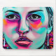 Art Mauspad. Das Gesicht der urbanen Straßenkünstlerinnen hat Kunst geschaffen. Nah ins Gesicht. Aquamarin, weiß, rosa und schwarz.