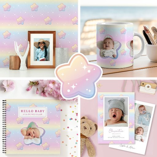 Ankündigen Sie die Ankunft Ihres Kleinen auf eine wirklich magische Art und Weise mit unserer Sammlung von Geburtshinweisen, mit einem lebendigen, regenbogenfarbenen Hintergrund mit funkelnden Sternen. Jedes Stück in dieser Sammlung ist dazu gedacht, die Freude und das Wunder Ihrer neuen Ergänzung zu feiern und bietet eine schöne und unvergessliche Möglichkeit, die Neuigkeiten mit Lieben zu teilen.
