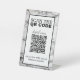 Trendiges digitales Menü mit QR-Code auf schwarz-weißem Marmorstein-Textur