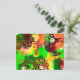 Eine leere Postkarte mit dem Effekt "Pinot Fluid Art" mit Herbstfarben, Orange, Schwarz, Bordeaux, Gelb und Kalkgrün.