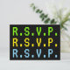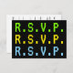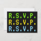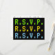 Dieses nerdy RSVP Kartendesign enthält die Meldung "R.S.V.P." auf der Vorderseite. Es enthält auch ein personalisiertes UAWG auf der Rückseite, das der Empfänger ausfüllen kann. RSVP-Karten wie diese könnten vielleicht genutzt werden, um herauszufinden, wer an einem Polterabend, einer Geburtstagsparty, einer Babydusche oder anderen Feiern teilnehmen wird.