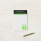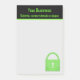Es ist einfach, dieses digitale Sicherheits-Schloss-Design durch Hinzufügen Ihres eigenen Namen oder Firma und anderen Text anpassen. Dies wird in einem Schriftart im Computerstil auf schwarzem Hintergrund in hellgrün angezeigt. Darunter befindet sich ein großer Platz zum Hinzufügen eigener Notizen, begleitet von der markanten Lock-Grafik in Computercode-Zeichen.