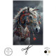 "Spirit of the Painted Prairie" ist ein Amerikanische Ureinwohner-Chefpferd, das aus dem lebendigen Wandteppich der Großen Ebene hervorgeht. "Spirit of the Painted Prairie" ist ein majestätisches Amerikanische Ureinwohner-Pferd. Sein Mantel, eine weiße Leinwand, ist mit einem Kaleidoskop von Stammesmustern geschmückt, von denen jede eine Geschichte von Erbe und Ehre erzählt. Rot, Blues und Orangen verbinden sich mit dem heiligen Türkis und symbolisieren den Himmel und das Wasser, die das Leben erhalten. Perlen, Tassels und Federn kaskadieren von seinem Mann, ein Zeugnis für die Kunst und Ehrfurcht seines Volkes. Dieses edle Steed steht als lebendiges Meisterwerk, als Brücke zwischen den alten Traditionen der Amerikanische Ureinwohner-Kultur und der wilden, ungezähmten Schönheit der Natur. Tribal bemalt Amerikanische Ureinwohner Digit Art von RHDesign für die Verwendung für Deco-Seite für Möbel, Stühle, Leinwand, Poster Kunst, Kissen und Wohngestaltung.