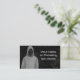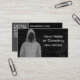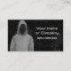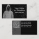 Ein monochromes Design in Grau und Schwarz, mit einer gekapselten, gesichtslosen cyberkriminellen oder ethischen Hackergrafik aus Maschinensprache. Die Vorderseite hat einen leicht grungy-Effekt und verfügt über 2 Zeilen benutzerdefinierten Text. Es gibt weitere vier Zeilen, die auf der Rückseite personalisiert werden können. Außerdem können Sie Ihren QR Code hinzufügen, um Kunden direkt auf Ihre Business-Website zu leiten.